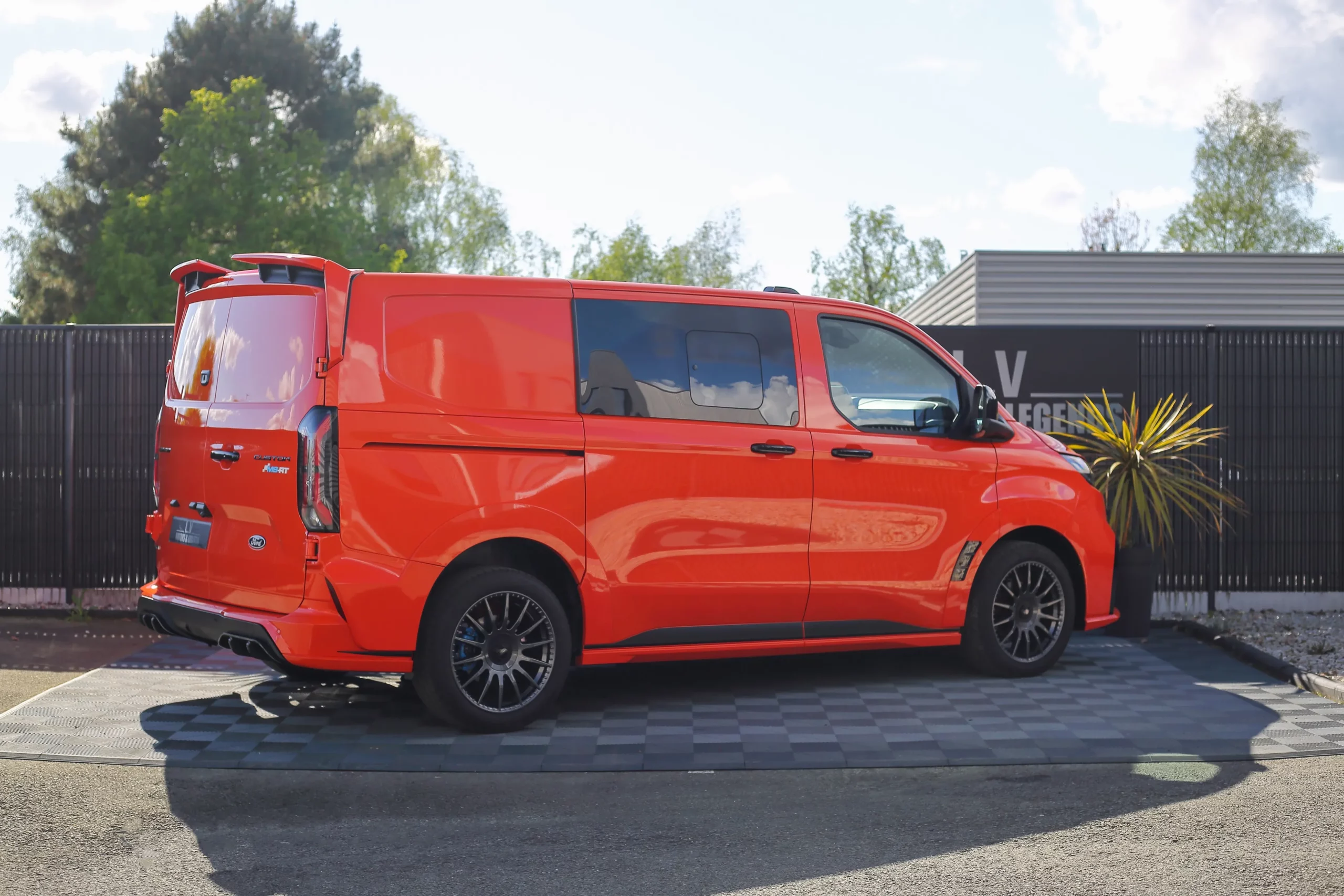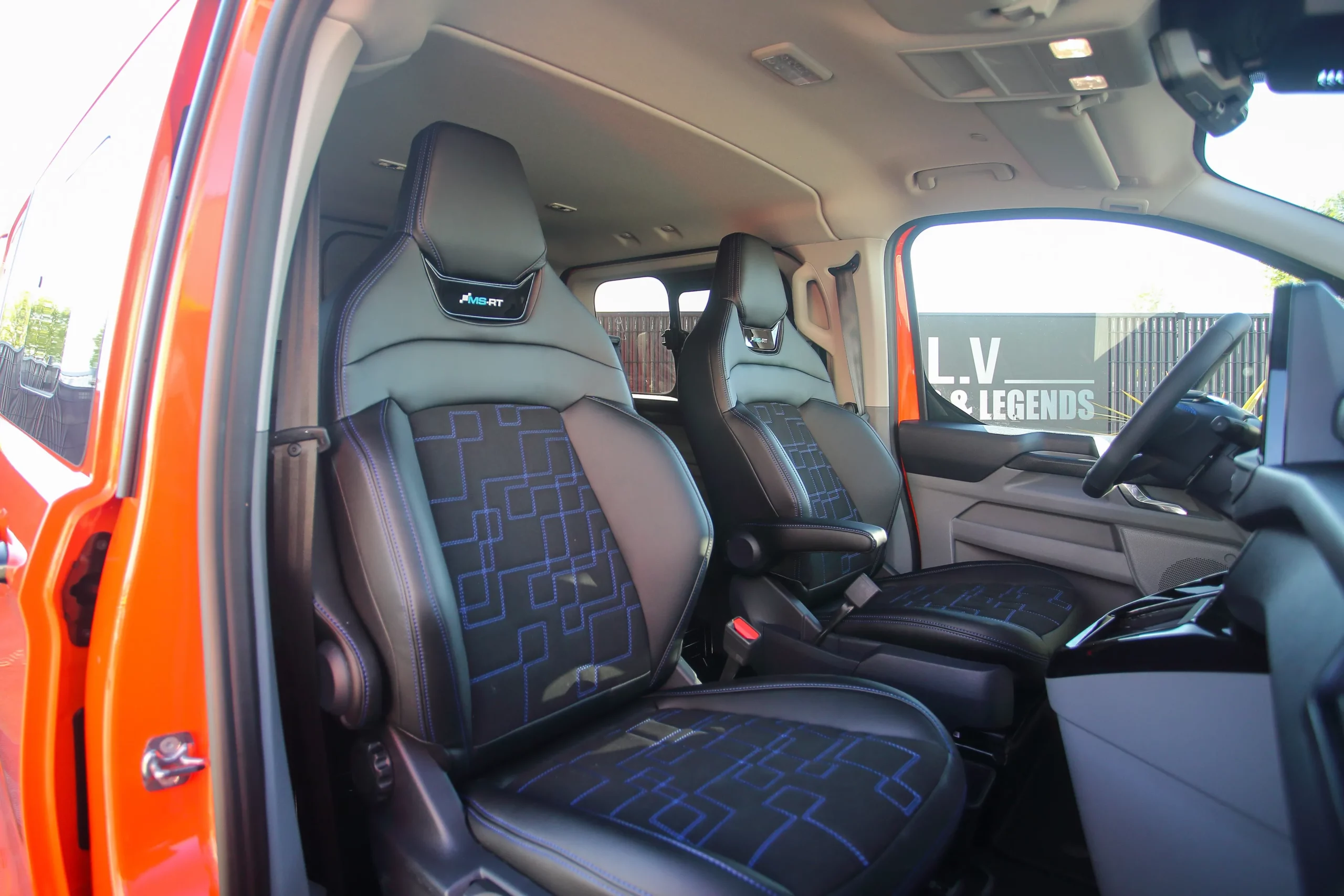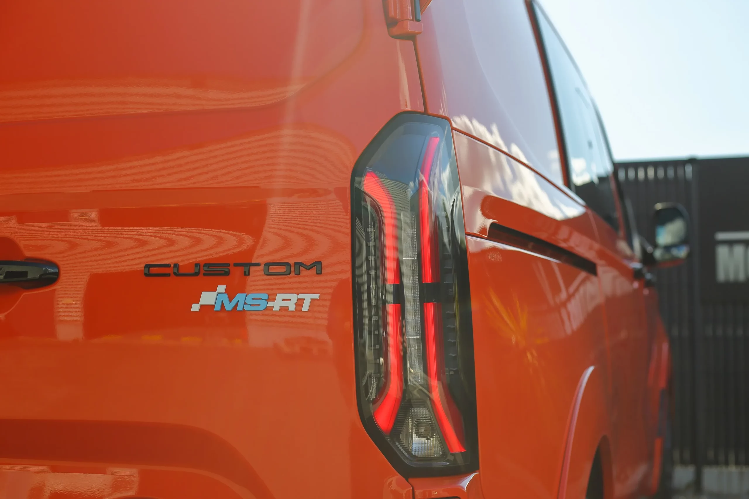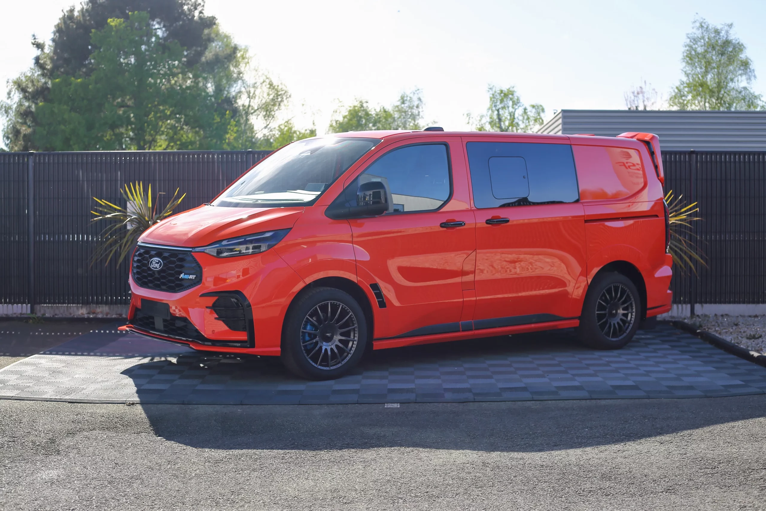 Dans cette configuration L1, le Transit Custom MS-RT conserve une excellente maniabilité tout en offrant un espace de chargement optimisé. Son style ne laisse rien au hasard : kit carrosserie spécifique, boucliers redessinés, calandre distinctive et jantes exclusives viennent souligner son caractère unique. Sa posture abaissée et son allure élargie renforcent encore son impact visuel.