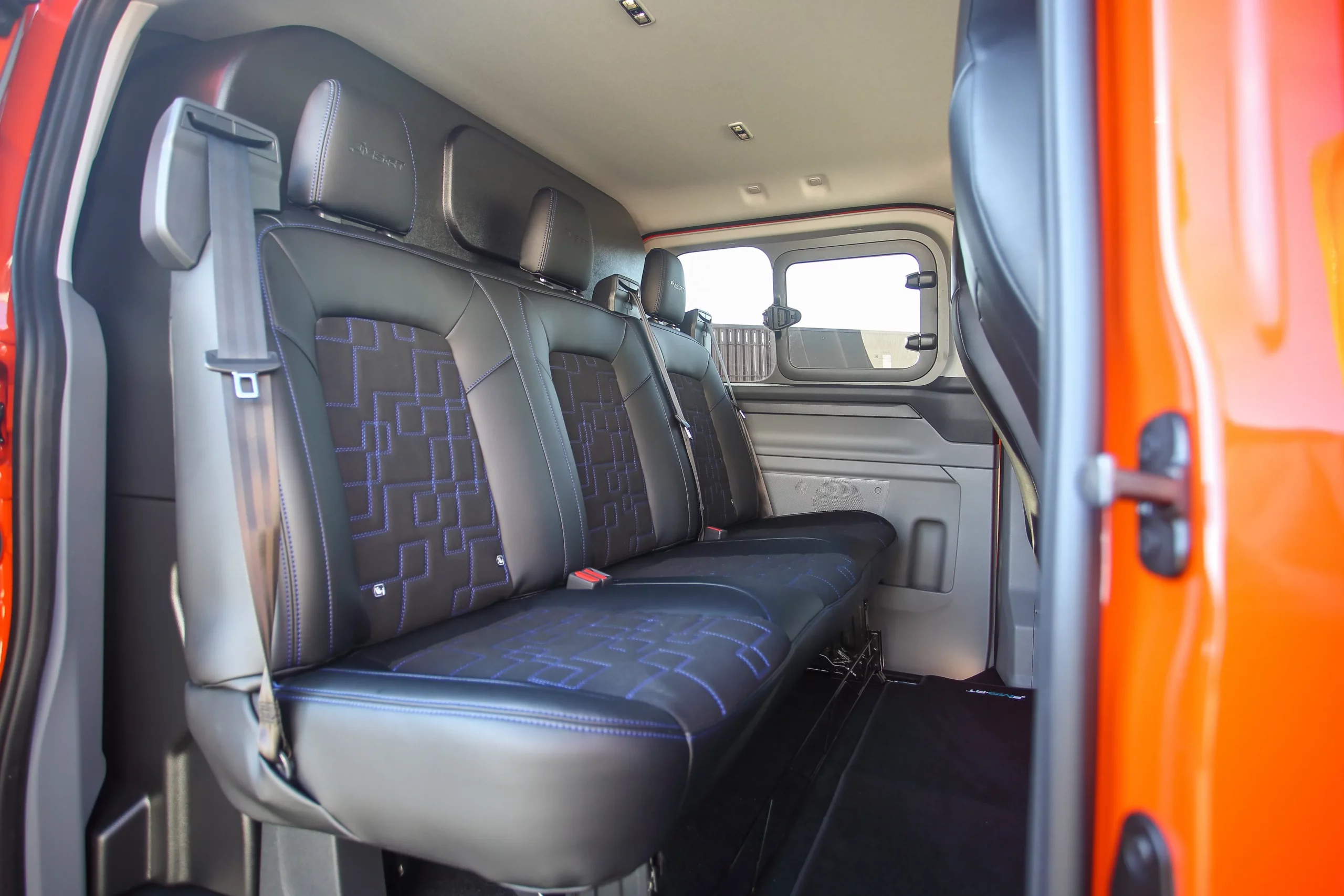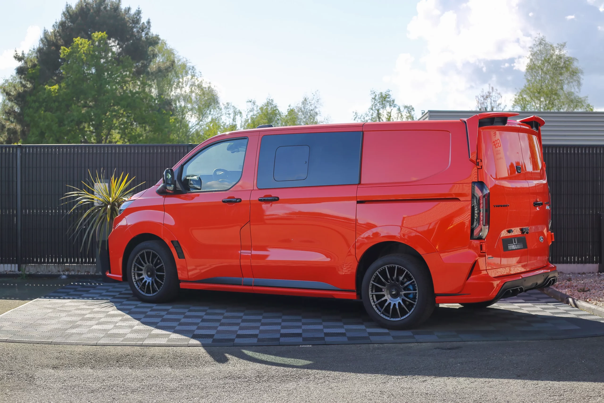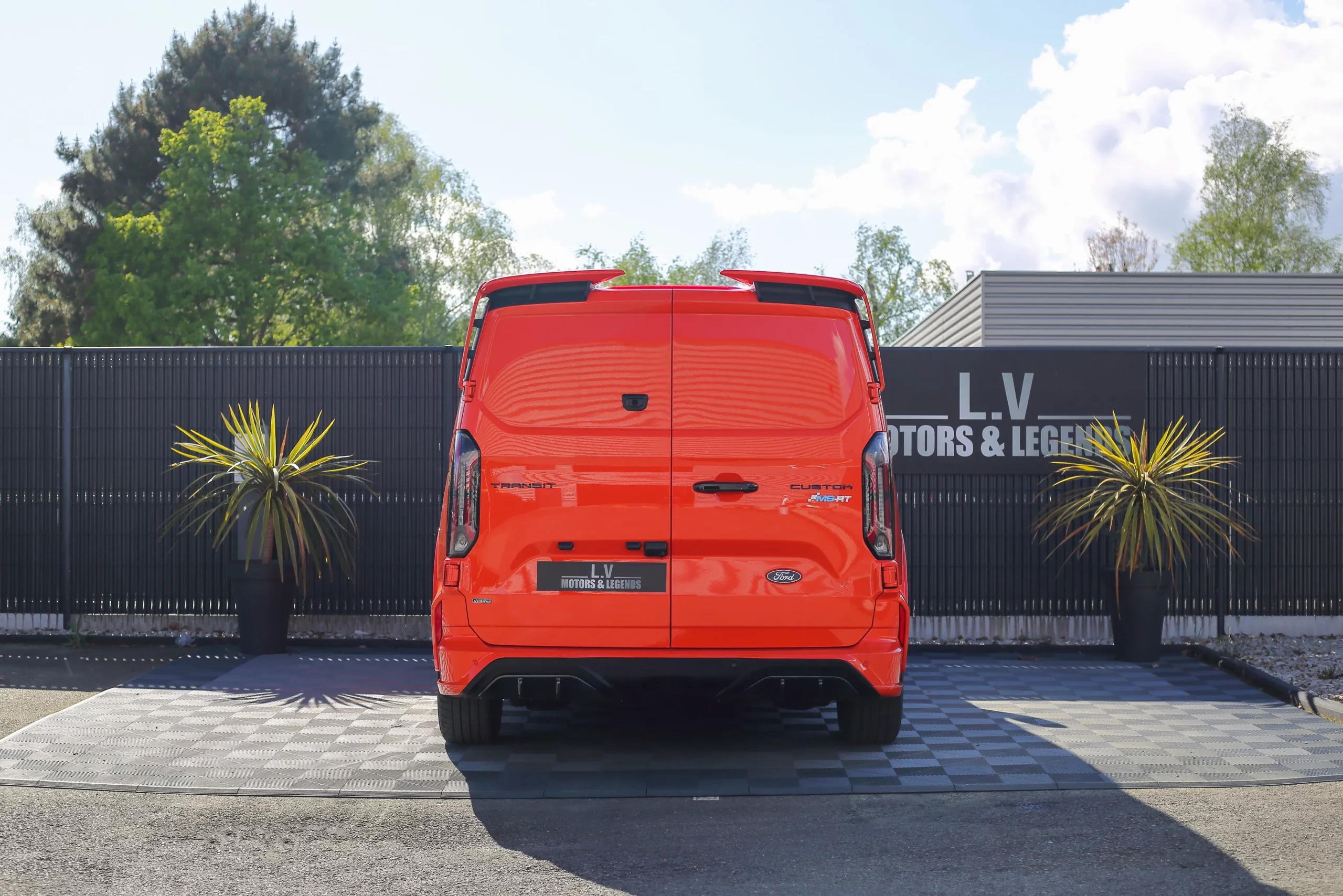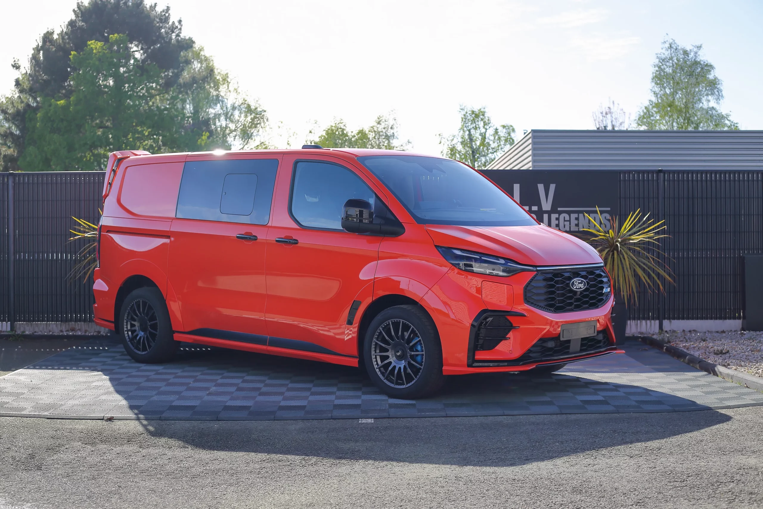 Dans cette configuration L1, le Transit Custom MS-RT conserve une excellente maniabilité tout en offrant un espace de chargement optimisé. Son style ne laisse rien au hasard : kit carrosserie spécifique, boucliers redessinés, calandre distinctive et jantes exclusives viennent souligner son caractère unique. Sa posture abaissée et son allure élargie renforcent encore son impact visuel.